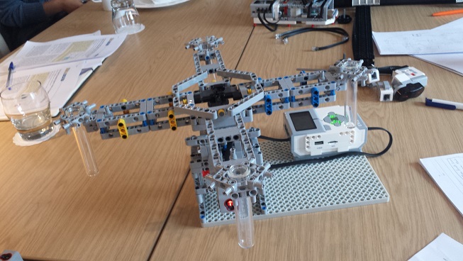 The automated Lego serial dilutor. This enables us to create calibration samples to analyse by UV-Vis Spectroscopy.