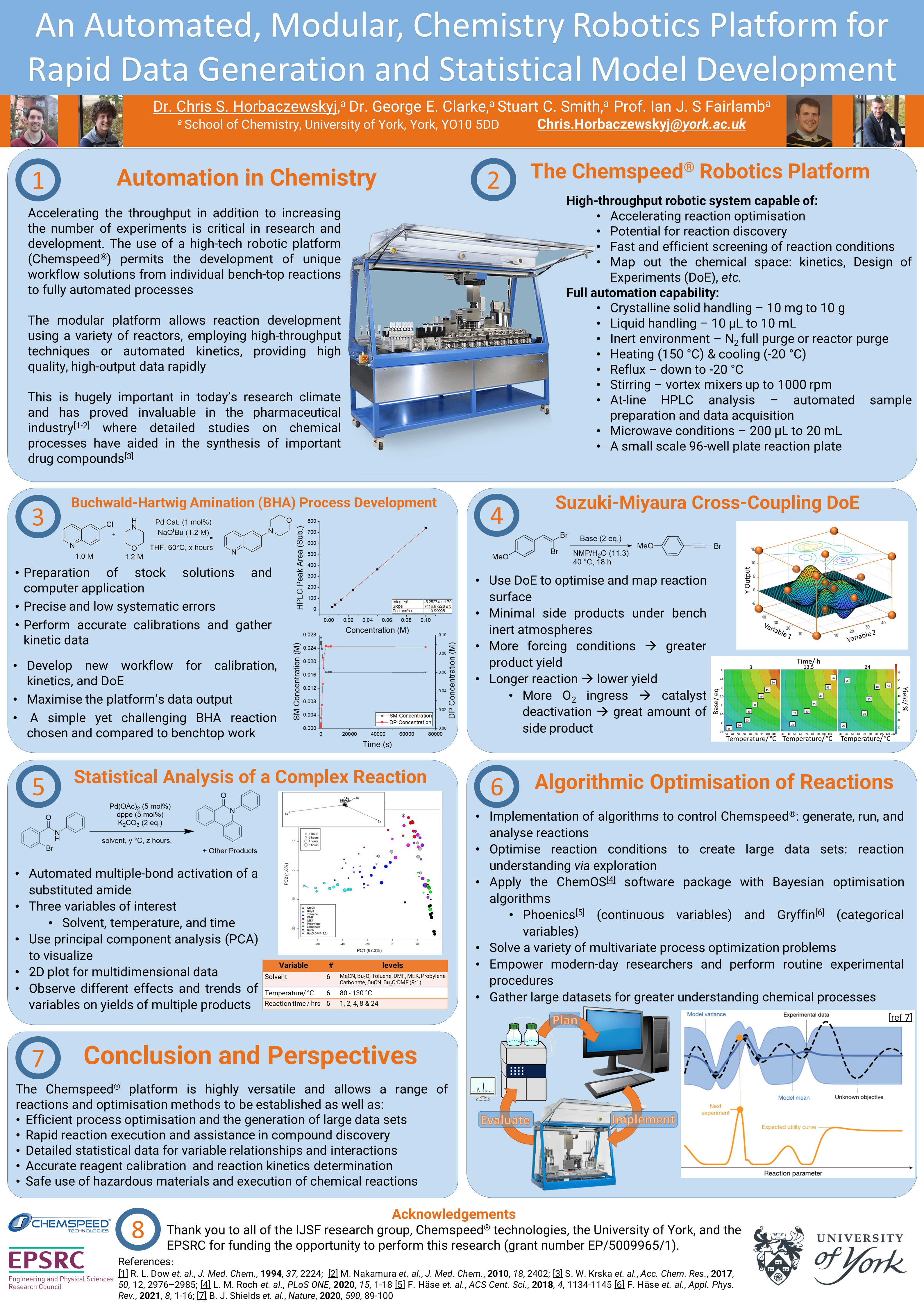 Prof. Fairlamb has given a webinar about work using the Chemspeed Robotics Platform here at the University of York. Titled: